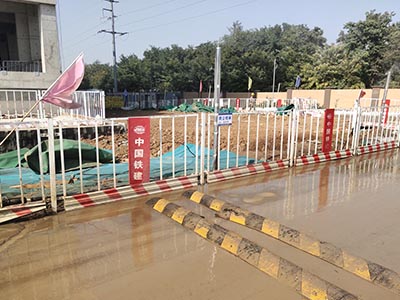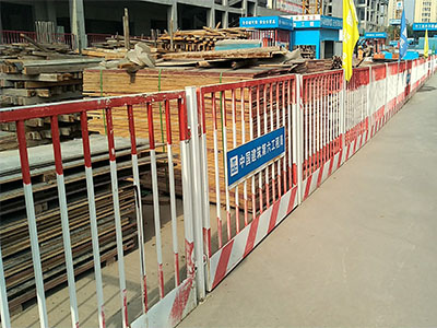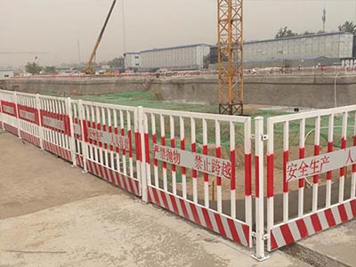 開挖深度超過2m的基坑周邊必須安裝防護欄?;臃雷o網(wǎng)安裝方便,可重復使用。開挖深度超過2m的基坑周邊必須安裝防護欄桿。